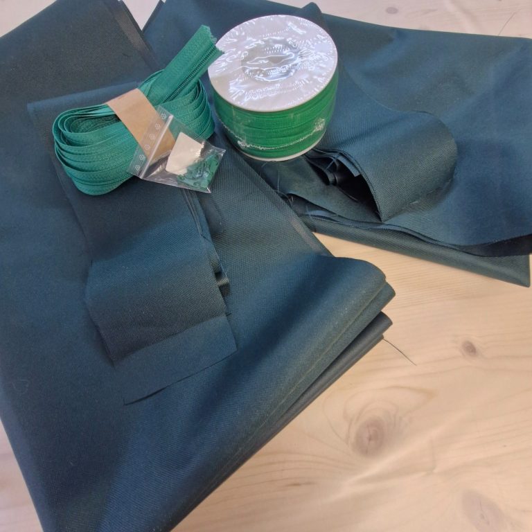 Im Gespräch kristallisierte sich schnell der perfekte Stoff heraus: ein wasserfester und lichtechter Traum in sattem Tannengrün.