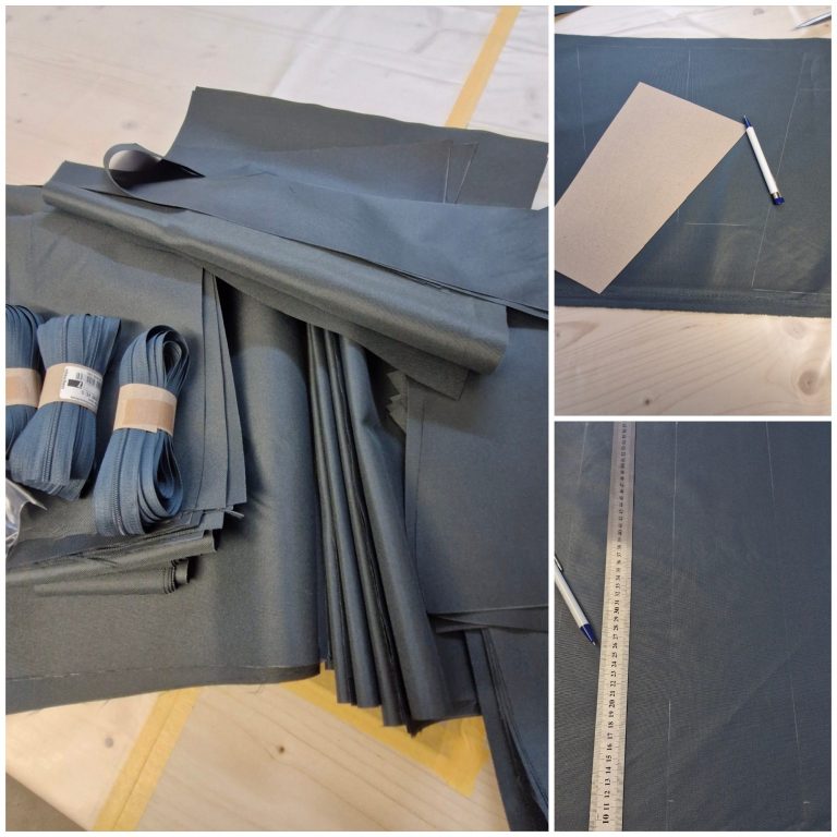 Im nächsten Schritt wurden die fertig genähten Bodenteile mit den oberen und unteren Platten der Kissenbezüge verbunden.