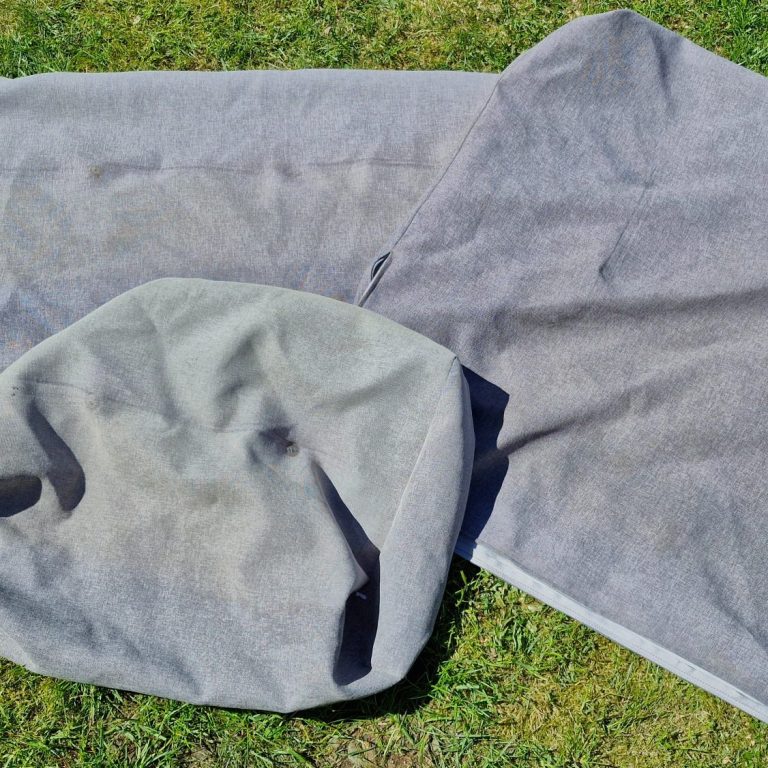 Nachdem die wichtigsten Fragen mit dem Kunden geklärt waren, nahm ich die alten Polster direkt mit in meine Werkstatt. Dort angekommen, befreite ich sie von ihren alten Hüllen und nahm akribisch Maß am Schaumstoff. Jede Abmessung wanderte in mein Notizbuch, gefolgt von der Stoffberechnung. Da der Schaumstoff in gutem Zustand war, konnte er weiterverwendet werden. So beschränkte sich meine Materialliste auf hochwertigen Outdoor-Stoff und passende Reißverschlüsse.