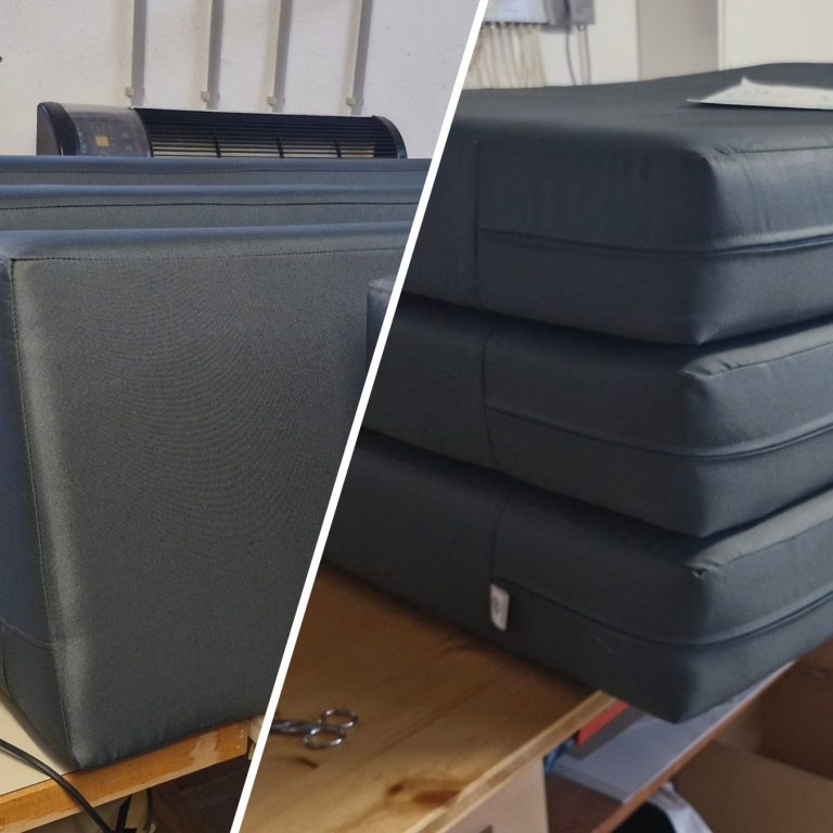 Nun war die Passformkontrolle unerlässlich. Ich zog die neuen Bezüge probeweise über den alten Schaumstoff. Das Ergebnis: Perfekte Passform! Die Bezüge saßen schön straff und machten bereits einen hochwertigen Eindruck